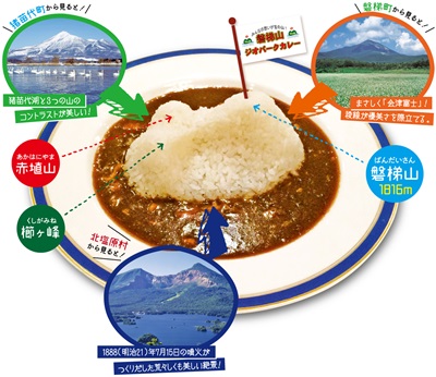 磐梯山がよく見える会津大学さんで、磐梯山ジオパークカレーを是非ご賞味くださいませ!