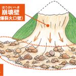「岩なだれ」とは大規模かつ高速で起こる山体の崩壊現象です。火砕流や泥流とは異なり、破壊された大小の岩塊が、マグマ物質を含まず、水もほとんど含まない状態で流下します。岩なだれの堆積地域では、起伏のある丘陵(流れ山)が形成されます。「岩屑なだれ」とも言います。