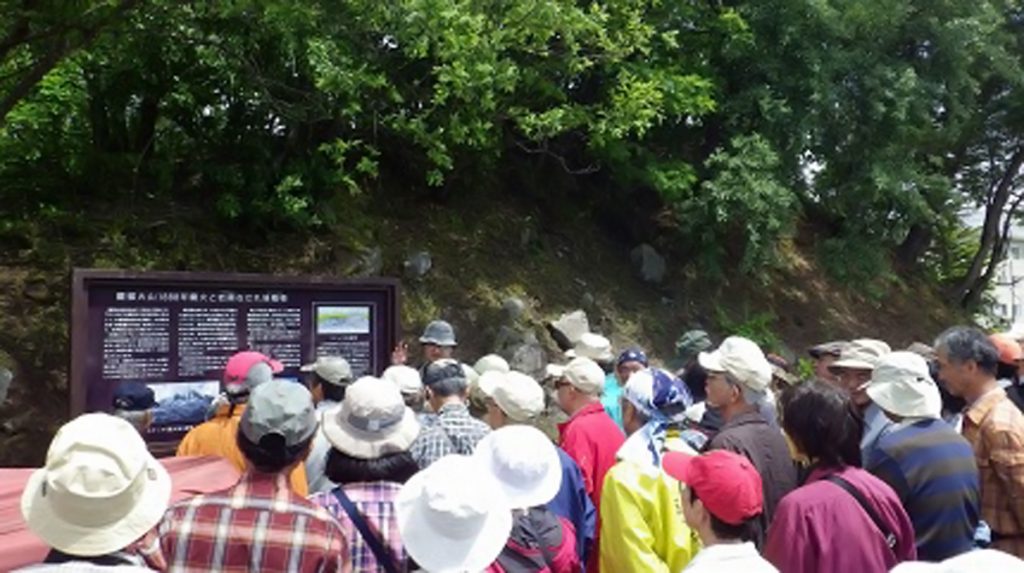 磐梯山噴火記念館3Dワールド側にある流れ山の露頭。岩屑なだれによる流れ山内部の構造がよく観察できる。