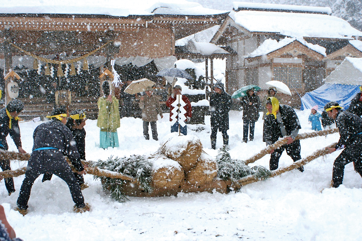 この磐梯神社において、毎年春分の日の神社祭礼で行われる作占いの神事が「舟引き祭り」である。恵日寺に伝わる江戸時代の年中行事記録には、元来は毎年旧暦の2月中旬に国家安全と五穀豊穣を祈願する「御国祭」(みくにまつり)の中で行われていたことが記されており、廃寺に伴って磐梯神社へと引き継がれた。この神事は、両端に長い綱を結び三俵の米俵を積んだ舟型の台を東西に分かれた氏子衆が社殿前で引き合って、その勝敗によって作柄を占うものである。三回戦の勝負で、東が勝てば豊作、西が勝てば米の値段が上がるとされており、野良着をまとった引手が太鼓の合図とともに威勢よく引き合う姿は実に勇壮である。舟の前には、磐梯明神の面を被って幣束(へいそく)を持った神職が立ち判定を行うが、このように神が直接人前に姿を現し神託(しんたく)を下す例は民俗学上極めて稀であるという。