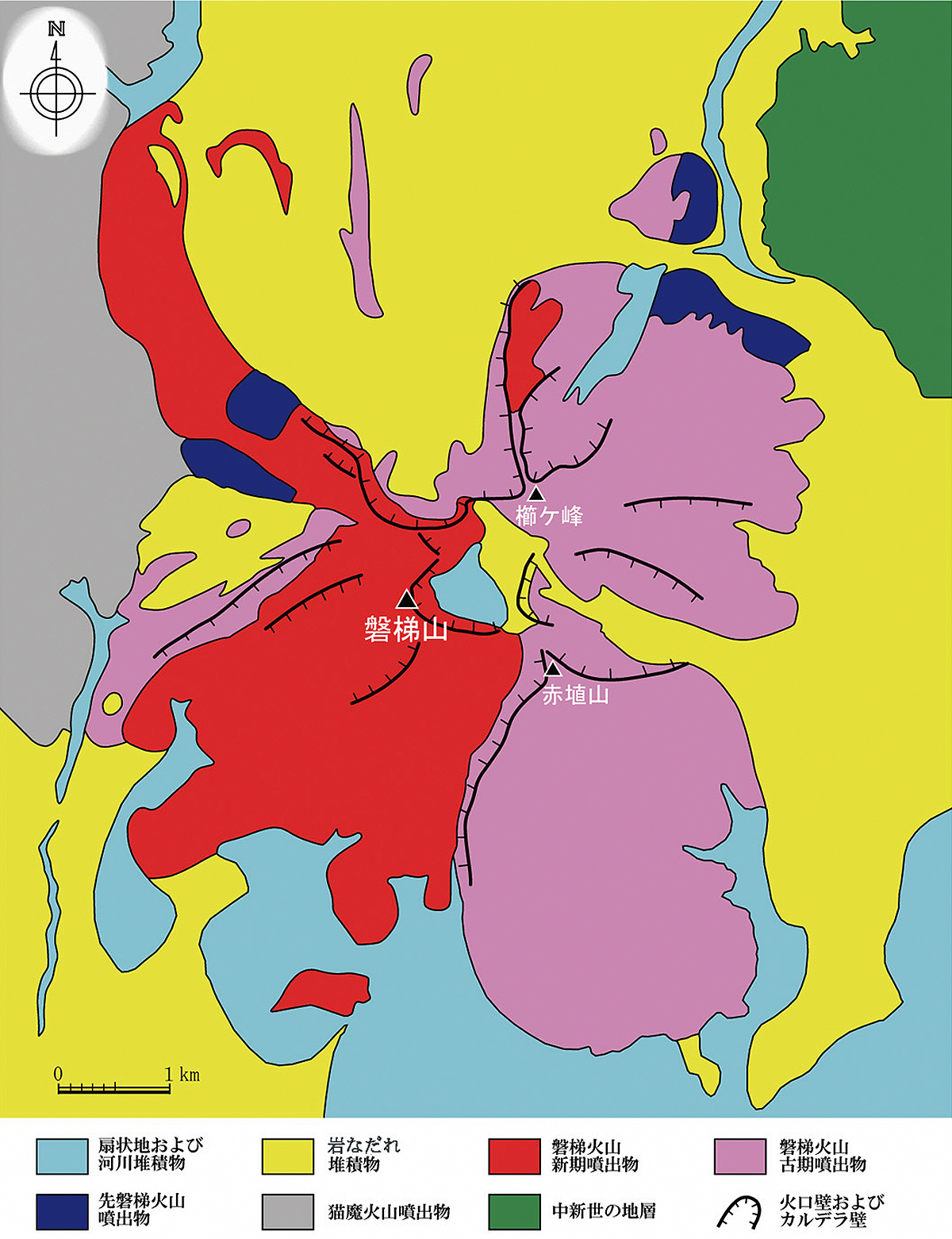 磐梯山の地質図(千葉・木村(2001)をもとに作成)