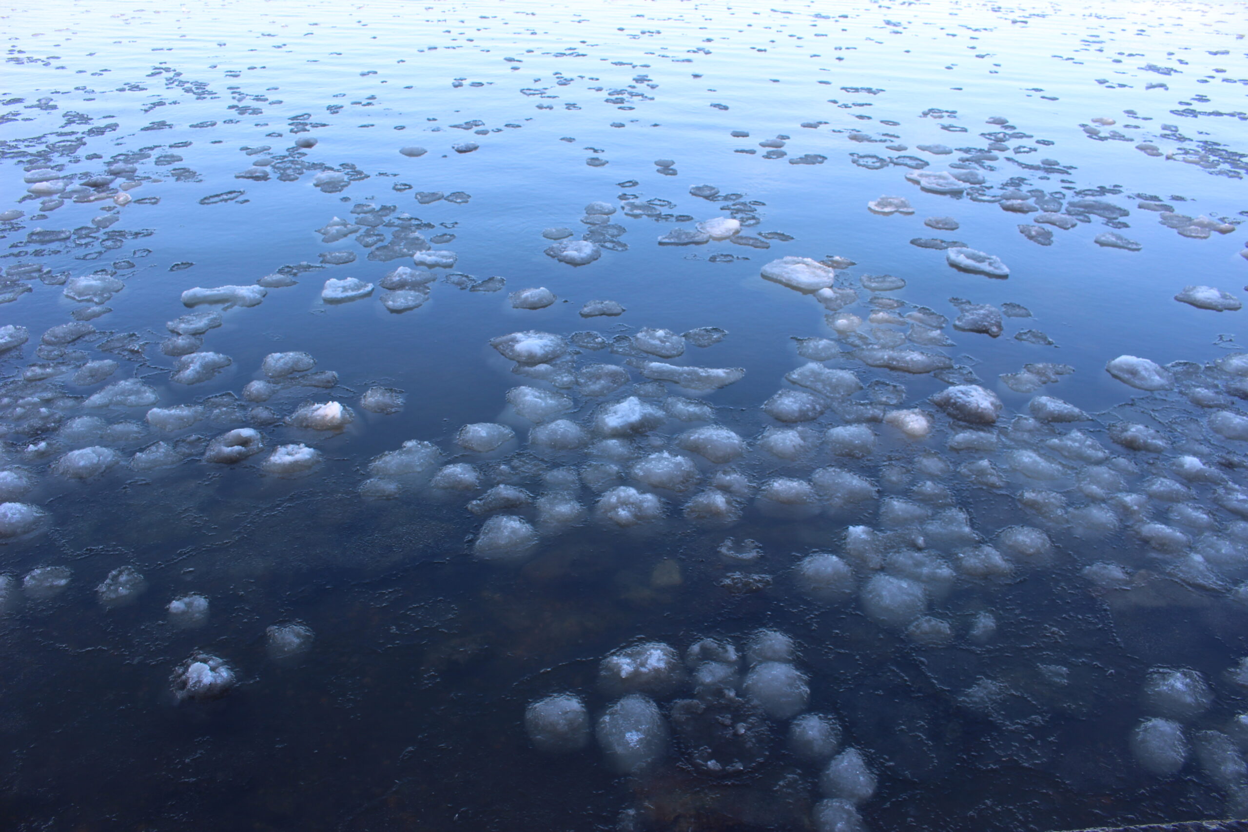 丸い氷やお皿状の氷がカシャカシャと静かにぶつかりながら、ぷかぷかと漂っている光景が広がります。