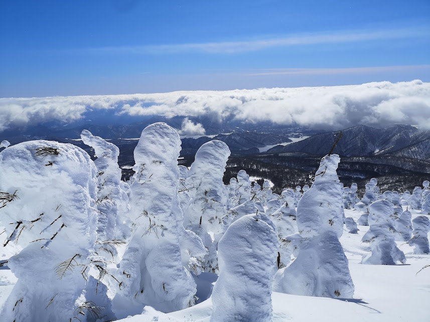 巨大な白い塊の間をスキー客が滑っていたり、それをゴンドラから見下ろしていたり。そう、あれこそ有名な樹氷です。あの巨大な白い塊が『モンスター』のように見えることから、樹氷は『スノーモンスター』とも呼ばれます。