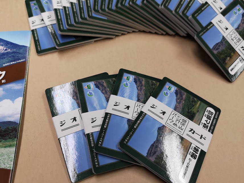 知る人ぞ知るこのジオカード。コロナ禍で出番が少なくなってしまい、昨年度の始めはたま~に事務局にジオカードのお問い合わせがある程度でした。当時ジオカードの在庫も沢山あったこともあり、お問い合わせをいただいた方々には簡単ながらお手紙(ラブレター)を添えて発送をしていたのですが、その効果があってでしょうか?最近ジオカードに関するお問い合わせがかなり増えております!