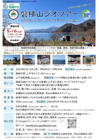 磐梯山ジオパーク協議会では、地質の日を記念して来月5月10日(金)に『磐梯山ジオツアー猪苗代湖上戸浜「上戸カルデラ火山」の魅力』を開催します。