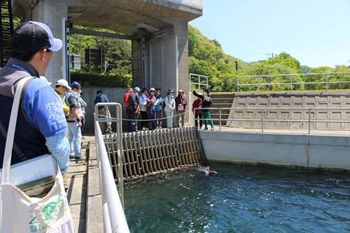 また、今回は普段入ることができない安積疏水「上戸頭首工」の見学も行いました。