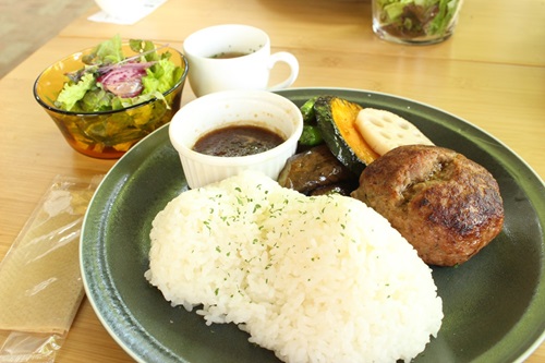 磐梯山型のライスに、こだわりの食材を使用したハンバーグのランチプレートです。