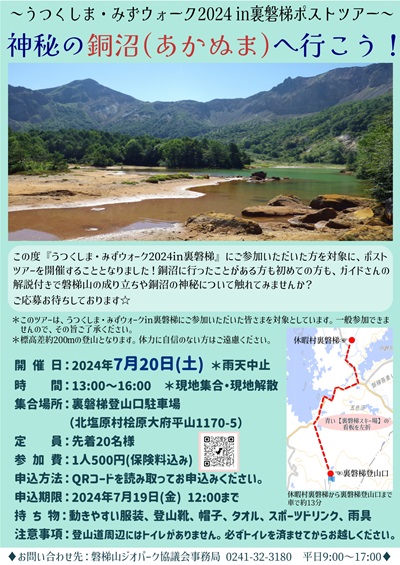 【中止となりました】うつくしま・みずウォーク2024 in 裏磐梯 参加者限定 ポストジオツアー『神秘の銅沼(あかぬま)へ行こう!』開催のお知らせ