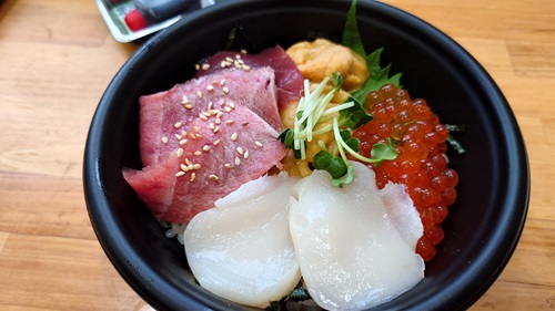 観光船乗り場のアルサスという施設では昼食に海鮮丼を食べました。
