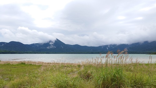 驚いたのはカルデラ湖、宇曽利山湖の砂浜が白や透明、黄色といった砂でできていたことです。