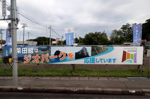 むつ市内の企業の看板には『下北ジオパークを応援しています』というPRが随所にみられ、市を挙げてジオパーク活動を推進している勢いが感じられました。