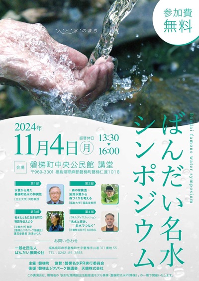磐梯町が主催する、『ばんだい名水シンポジウム』が令和6年11月4日(月)に開催されます。