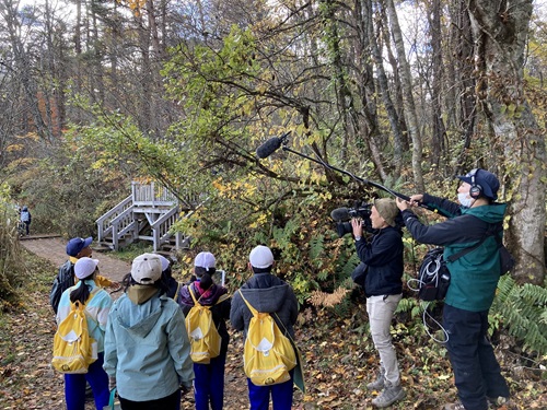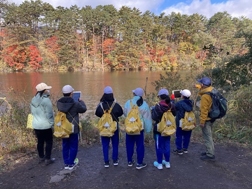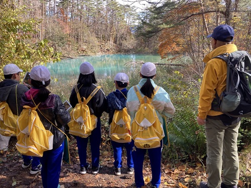 ・磐梯町の小学生が五色沼で森林環境学習を行う出前授業の様子
