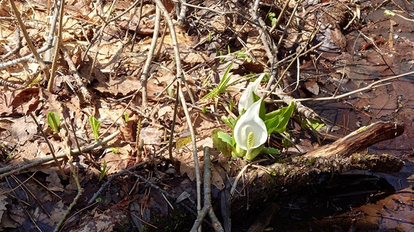 山桜のほかにも湿原にたたずむハンノキの森やミズバショウも見どころです!(写真は5月8日撮影)