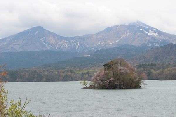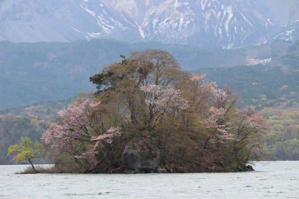 桧原湖には『桜島』と呼ばれる、山桜が咲く丸い島があります。