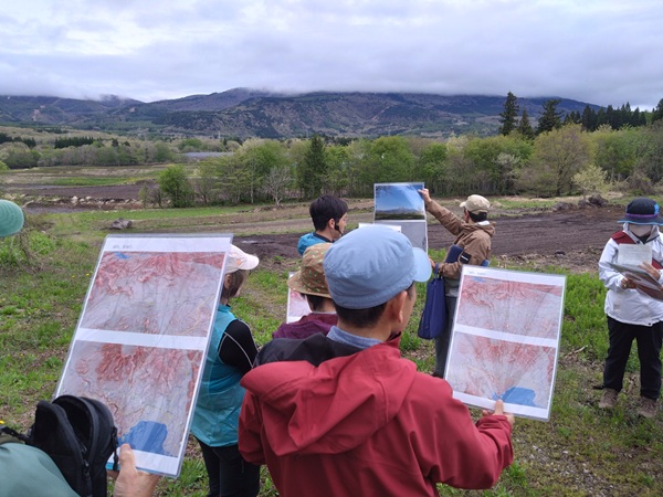 今回のツアーでは、現地を巡るだけでなく赤色立体地図と組み合わせながらのものとなり、伝承と現代の科学が合体した新しいジオツアーとなりました。