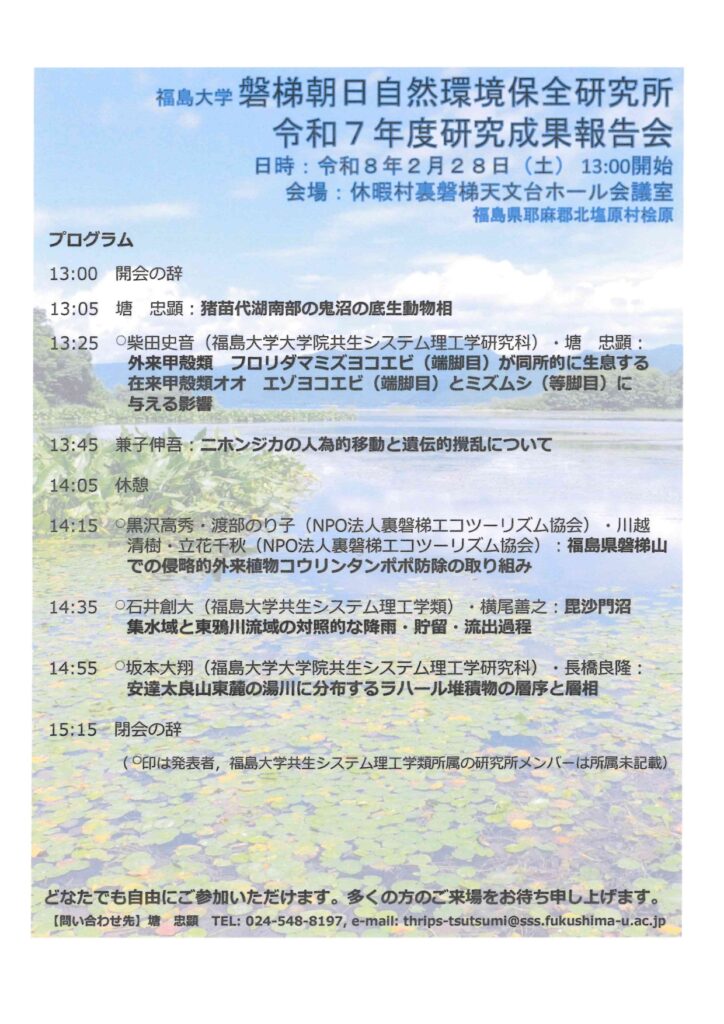 【2/28研究成果報告会お知らせ】福島大学 磐梯朝日自然環境保全研究所 令和7年度研究成果報告会