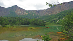 磐梯山の裏磐梯登山口から、裏磐梯スキー場のゲレンデを登りきり、ほどなくのところにある沼です。