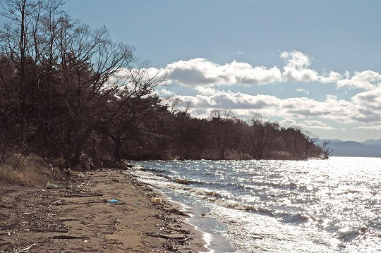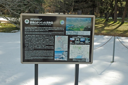 天神浜は、日本3大天満宮とも称される小平潟天満宮の前に広がる砂浜です。(磐梯山ジオパークジオサイトNo.68です。天満宮はNo.69です。)