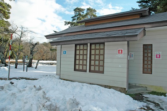 しぶき氷を見る前にトイレを済まし(奥にあるのは…ジオパークの案内板)