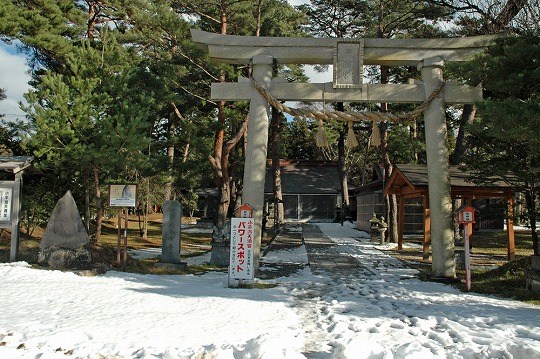 小平潟天満宮。雪の中でも合格祈願のお参りのあとが続いていました。