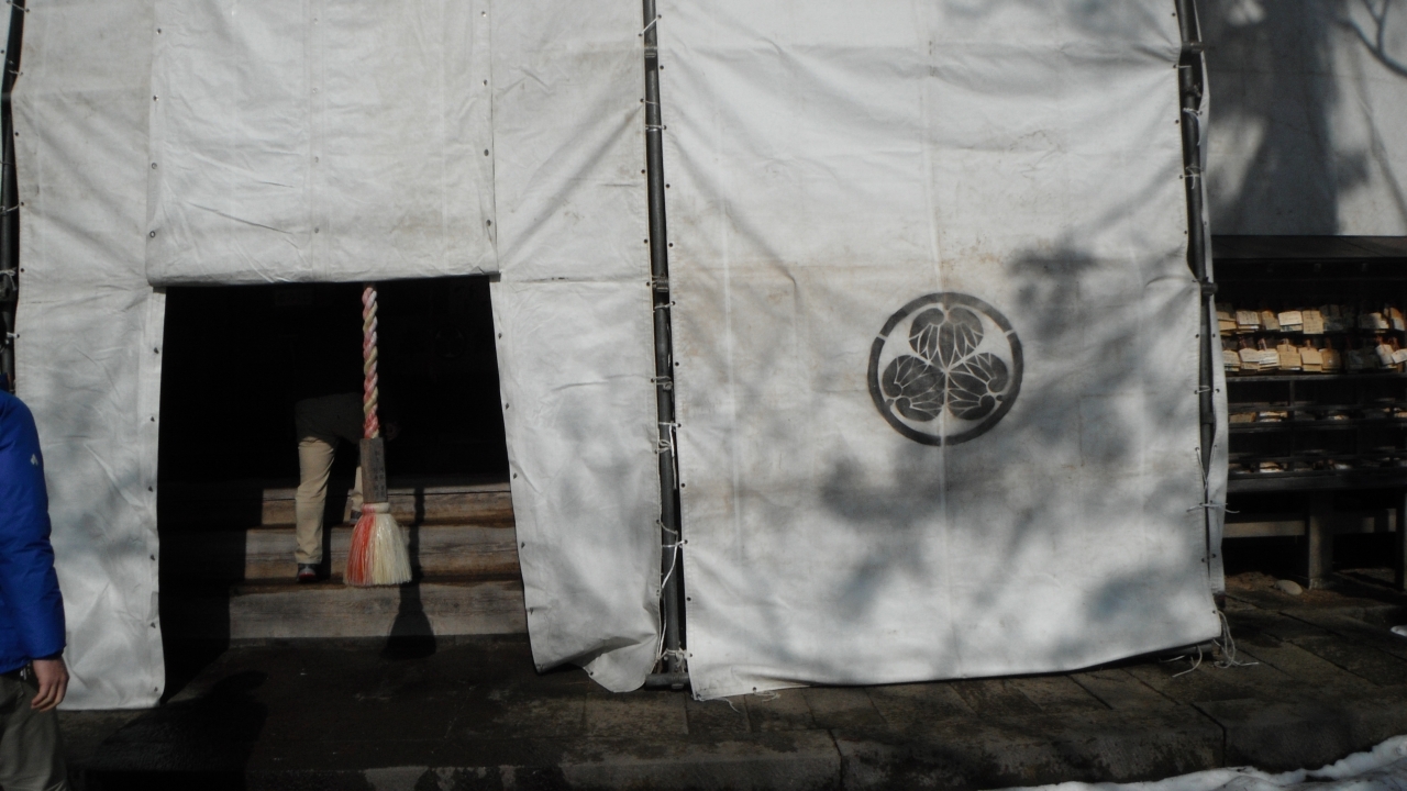 拝殿には、雪用の沙幕が張ってあります。