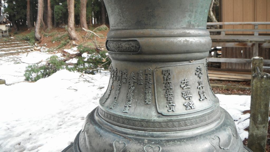 灯篭は、明治6年に再奉納されたものです。戊申戦争の名残です。