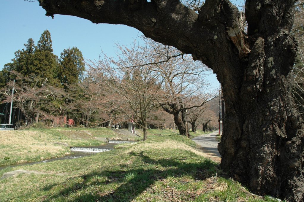 川桁断層の川桁山から流れている川は護岸工事がされてなく土手沿いに植えられた桜並木と静かな佇まいを見せています。