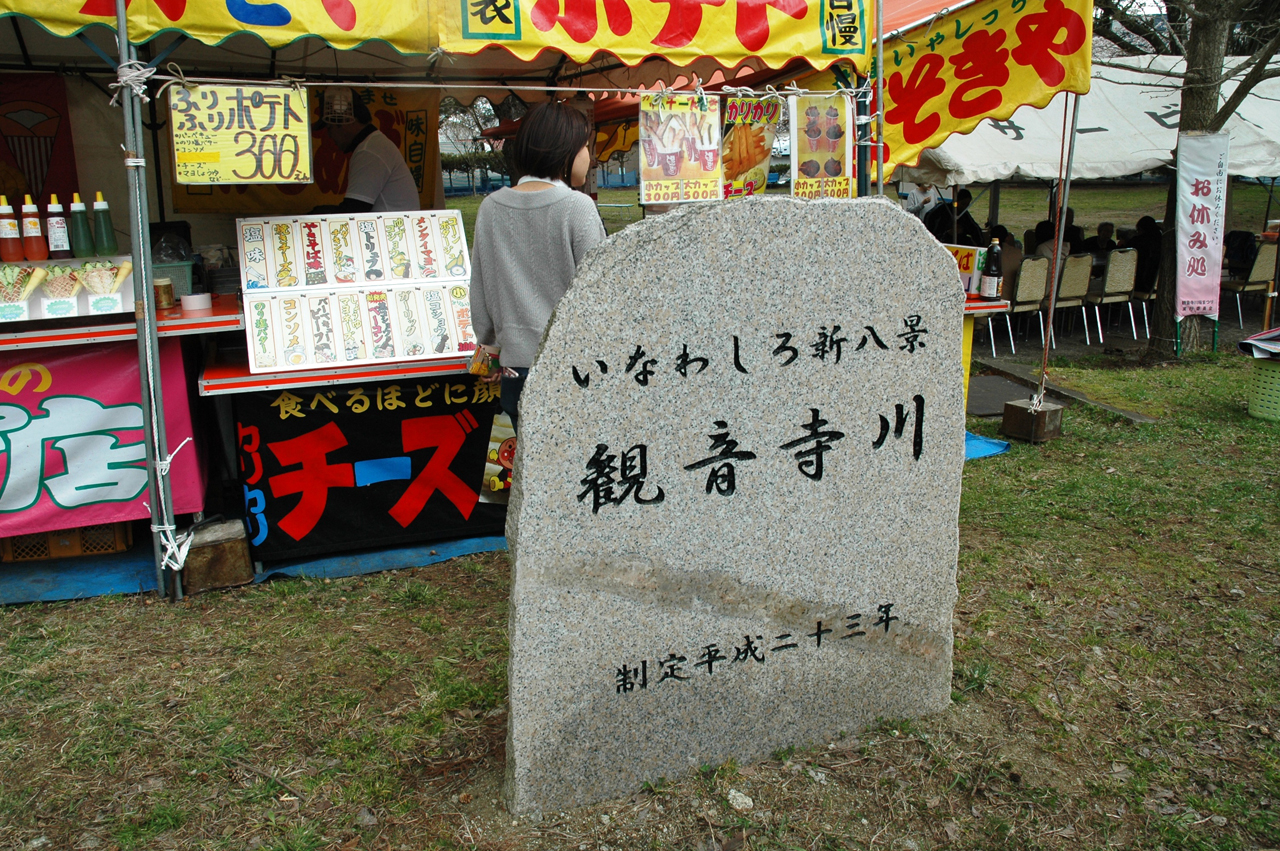 観音寺川では18日から出店が開店、本日19日からは夜桜ライトアップが始まります。