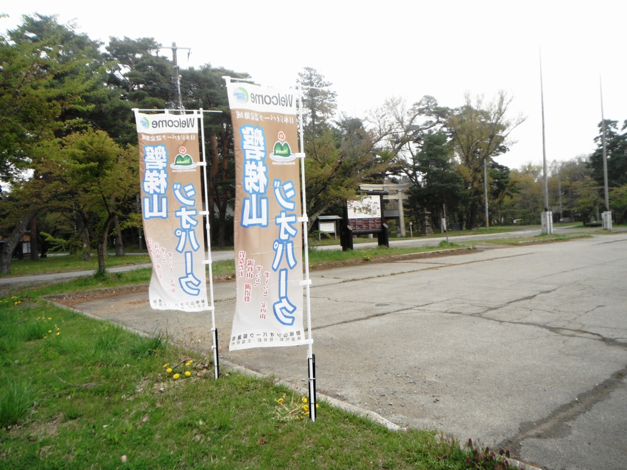 連休合間の5月2日、冬の間お休みだった磐梯山ジオパークのぼりを設置しました。