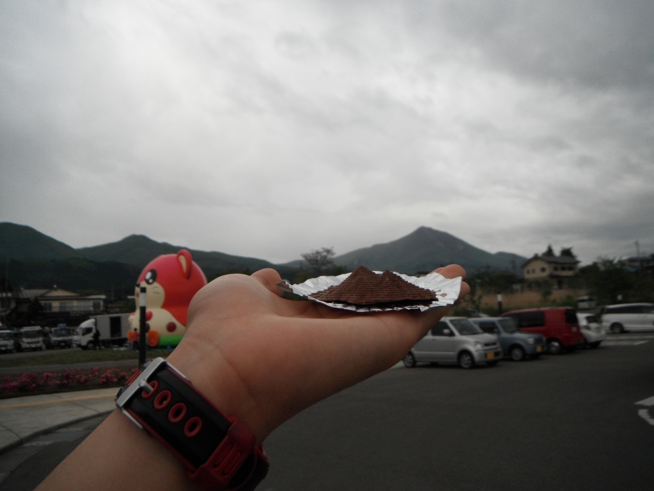 出来たチョコは磐梯山と一緒に”ポーズ”
