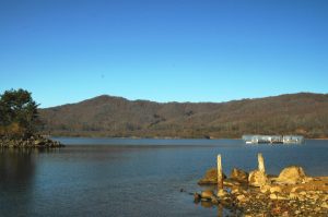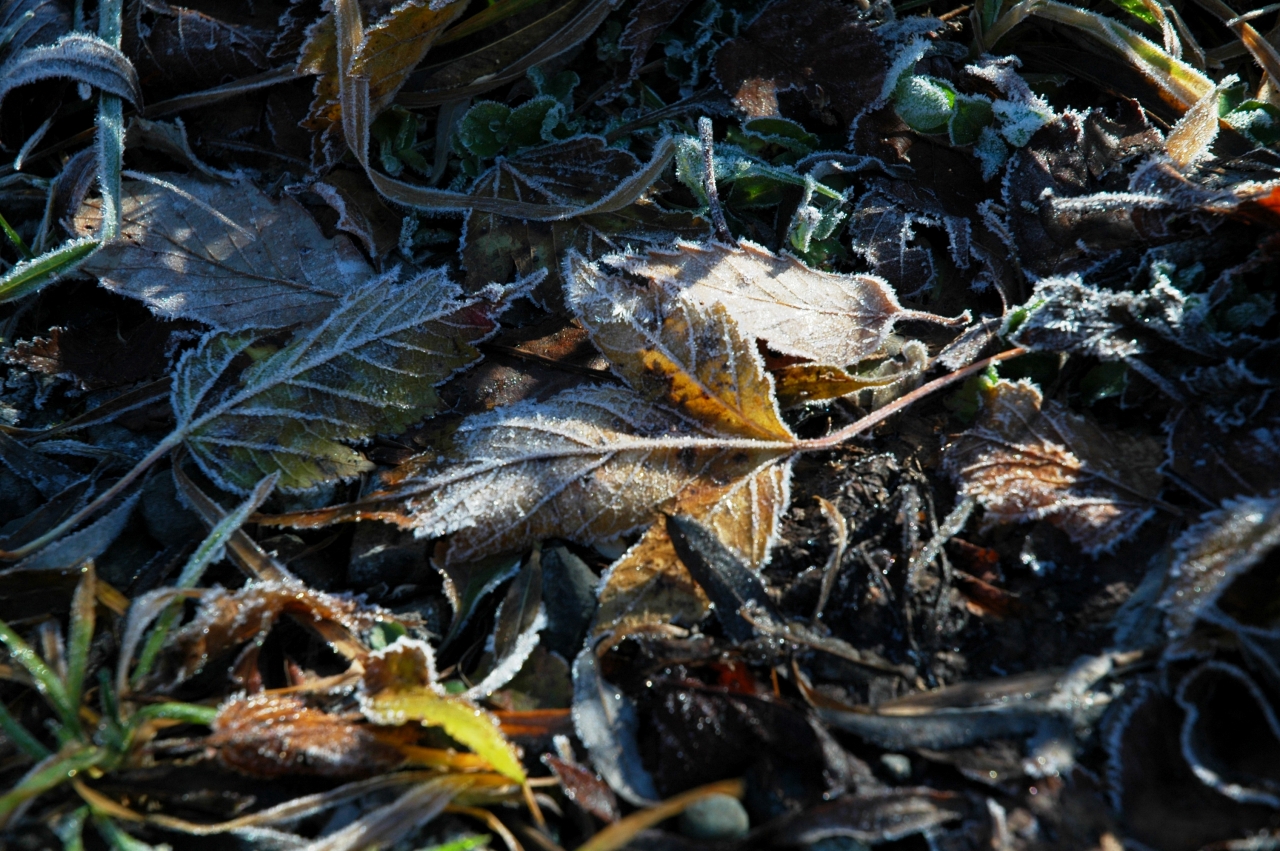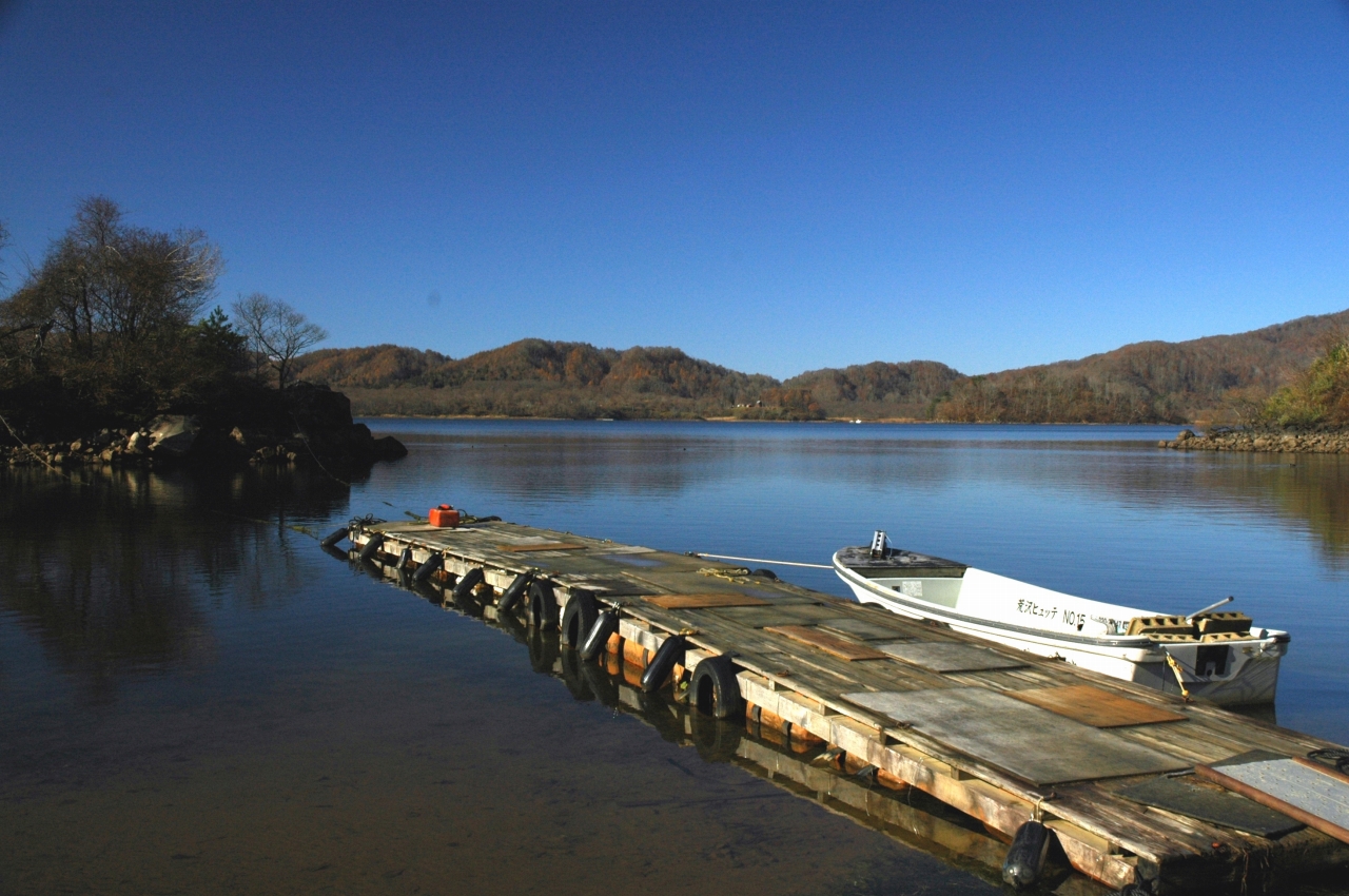 裏磐梯の桧原湖からは穏やかな磐梯山の表情が見えましたが、日陰の道路には氷が張り落ち葉には霜が降りていました。