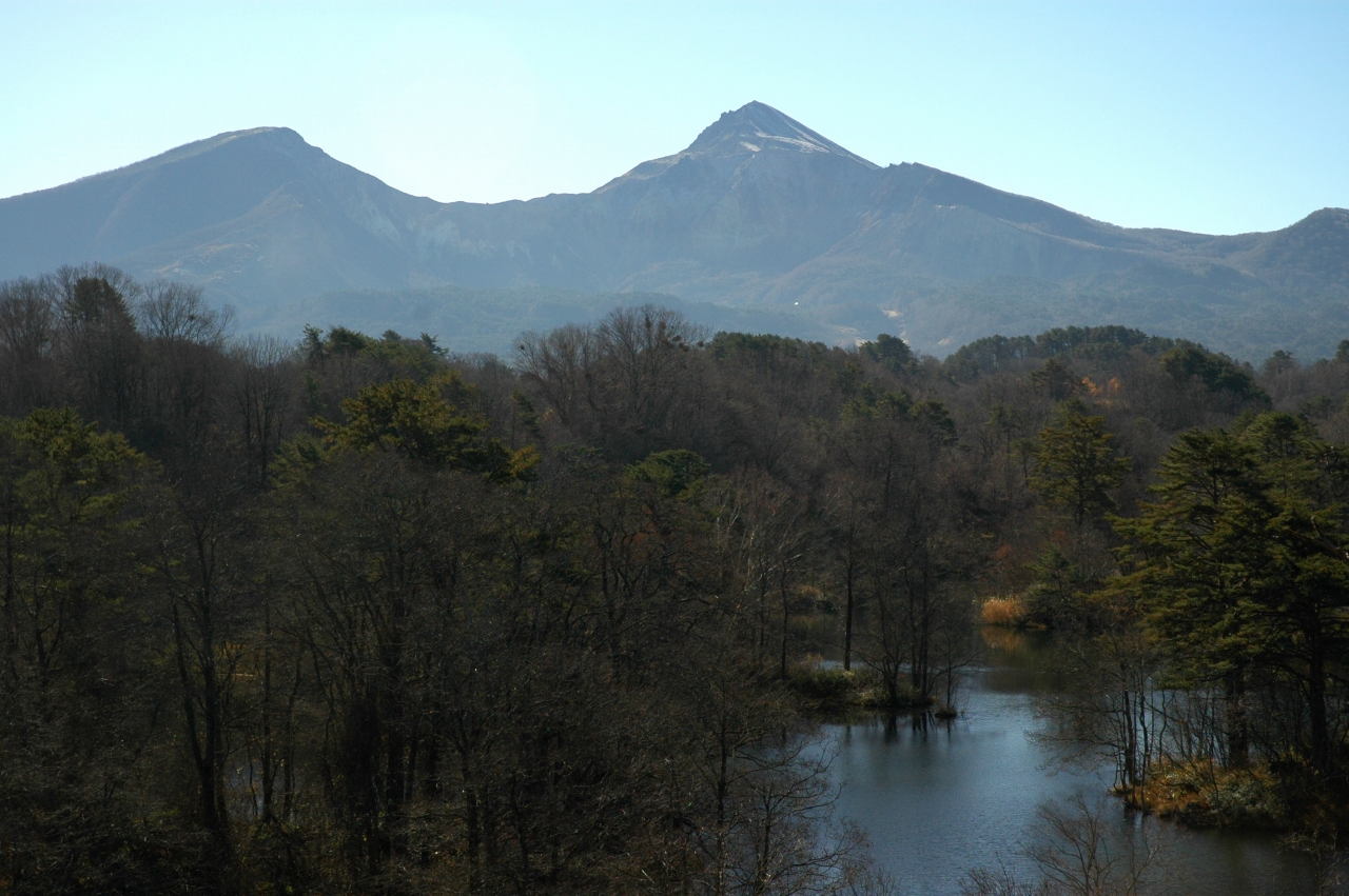 足を延ばして中瀬沼の展望台から磐梯山を眺めると、頂上付近に前日の雪が残って見えました。真っ白な磐梯山の姿はもうすぐです。