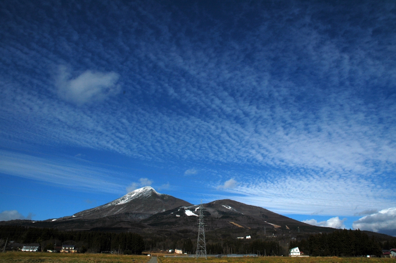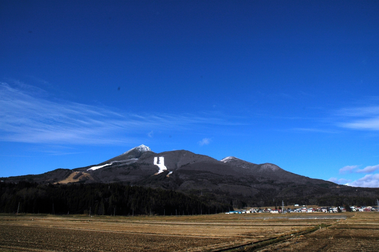 昨日までの曇天雪模様と強風から一転して、くっきりと晴れ間の中に磐梯山が姿を見せてくれました。
