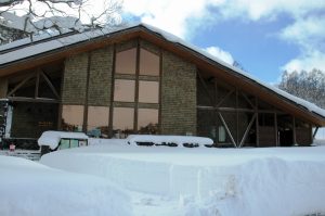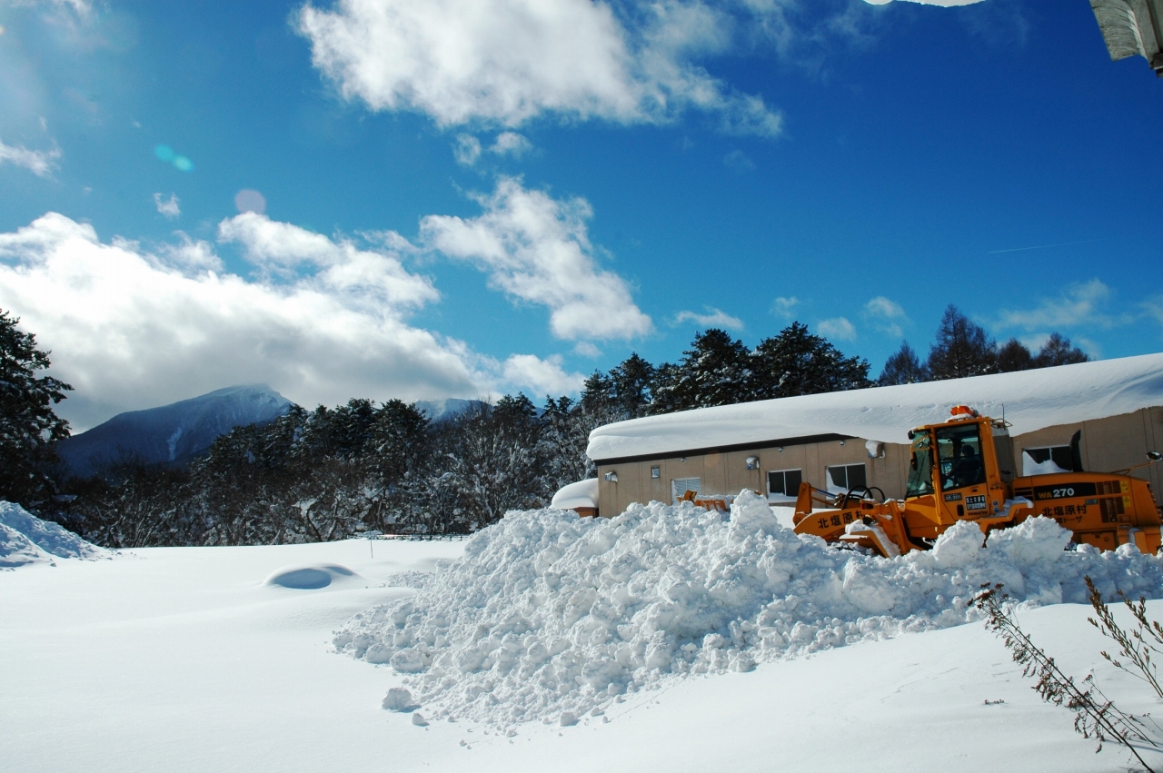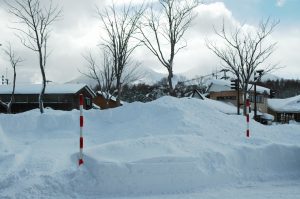 北塩原村役場裏磐梯支所のまえの広場はすっかり雪山