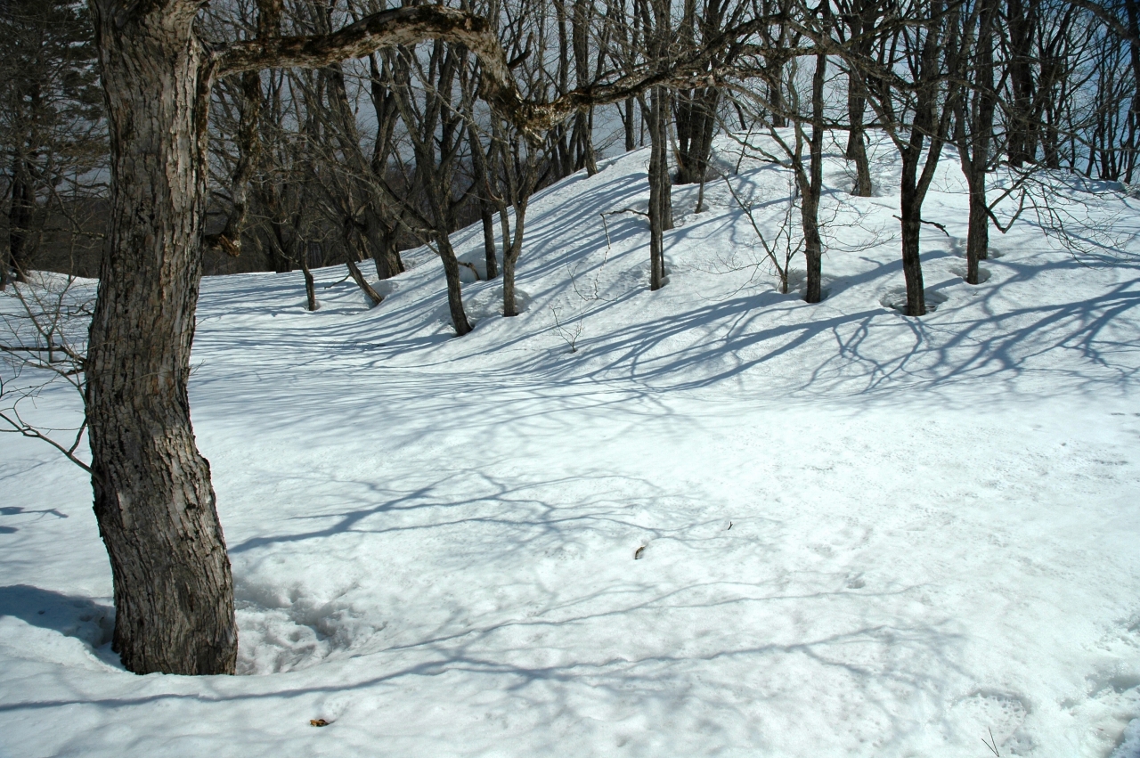 木の根元周りは「根回り穴」が大きくなりました(樹木の活動の熱で雪が融ける)