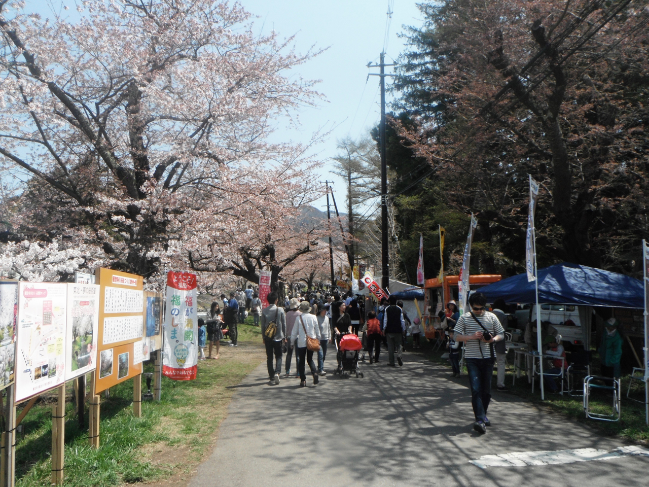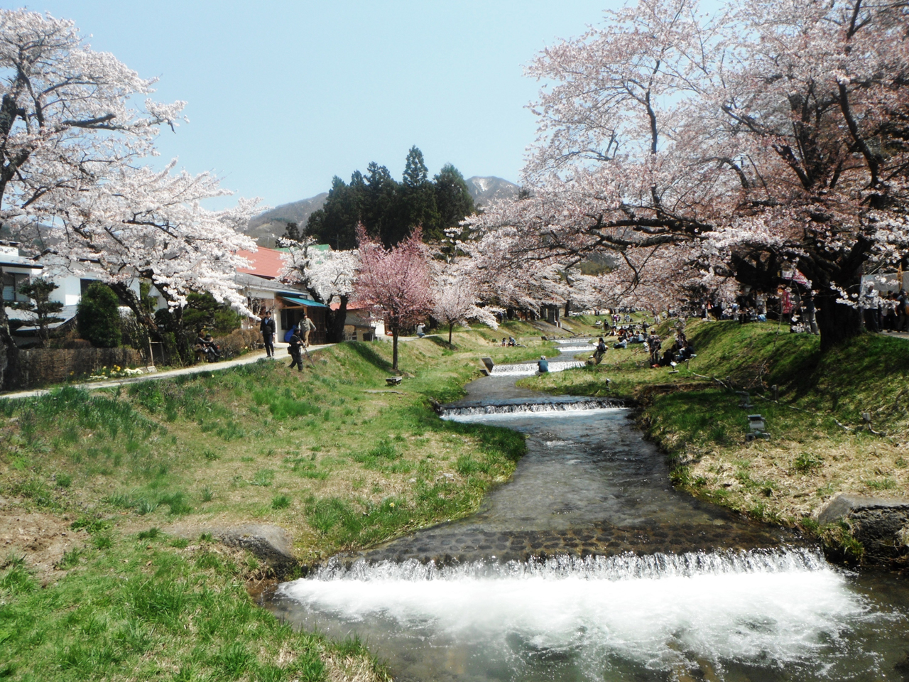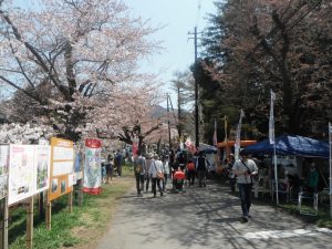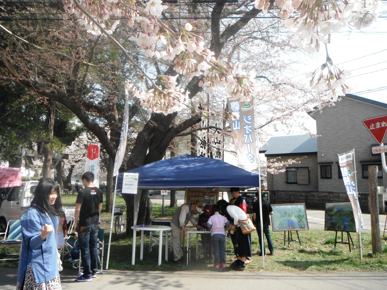 ゴールデンウィーク4月最後の日曜日、猪苗代町の桜の名所、観音寺川の「桜まつり」に磐梯山ジオパークも参加しました。
