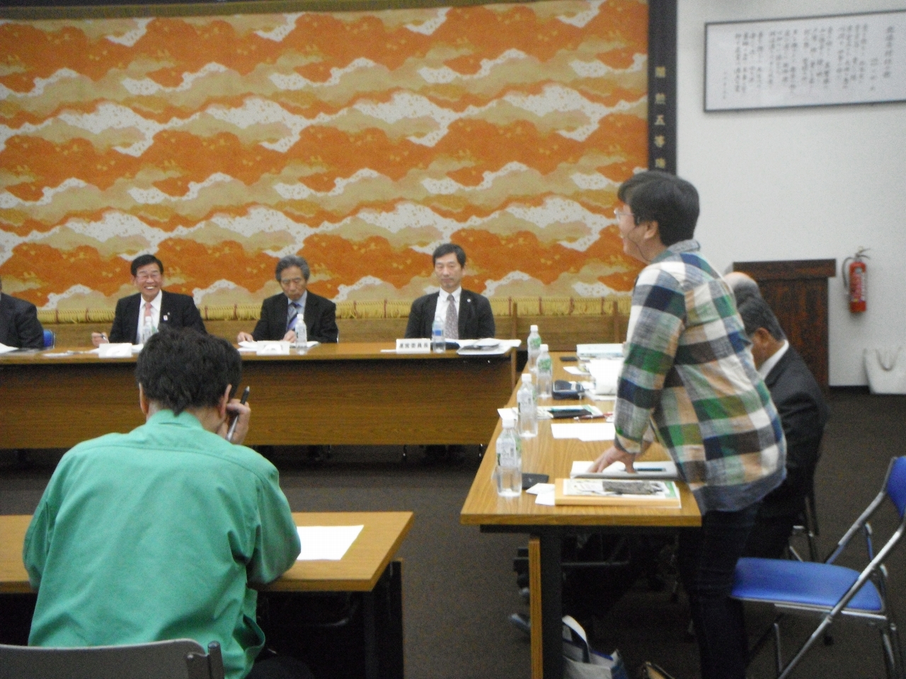 ガイド団体の「いなわしろ伝保人会」五十嵐代表の質問に議長がにこやかに対応しています。