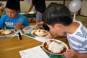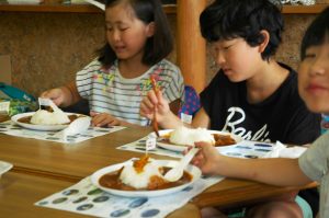 裏磐梯小児童クラブ 磐梯山ジオカレーの昼食です