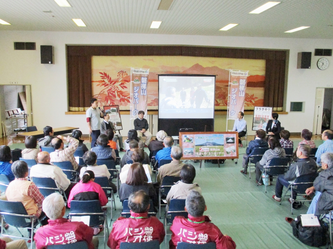 前日までの雨も収まりまずまずの天候の中、猪苗代町農村環境改善センター(漢字が続くとながいですねー)を会場に「第8回磐梯山ジオパークフォーラム in 猪苗代町」が開催されました。