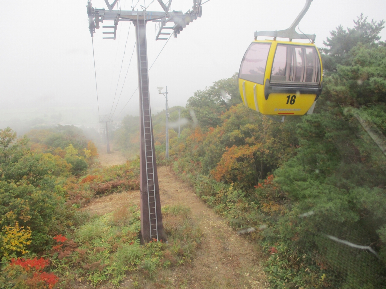 ロープウェイのゴンドラでのぼります