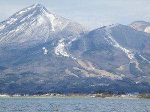 穏やかな陽気の中、猪苗代湖・天神浜に来ました。