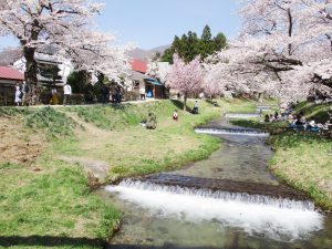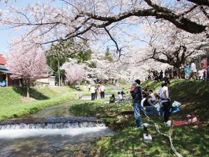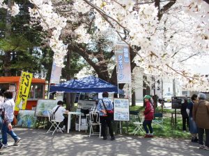 今年も磐梯山ジオパークの桜の名所ジオサイト「観音寺川(かんのんじがわ)」を会場とした桜まつりに参加しました。