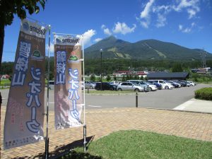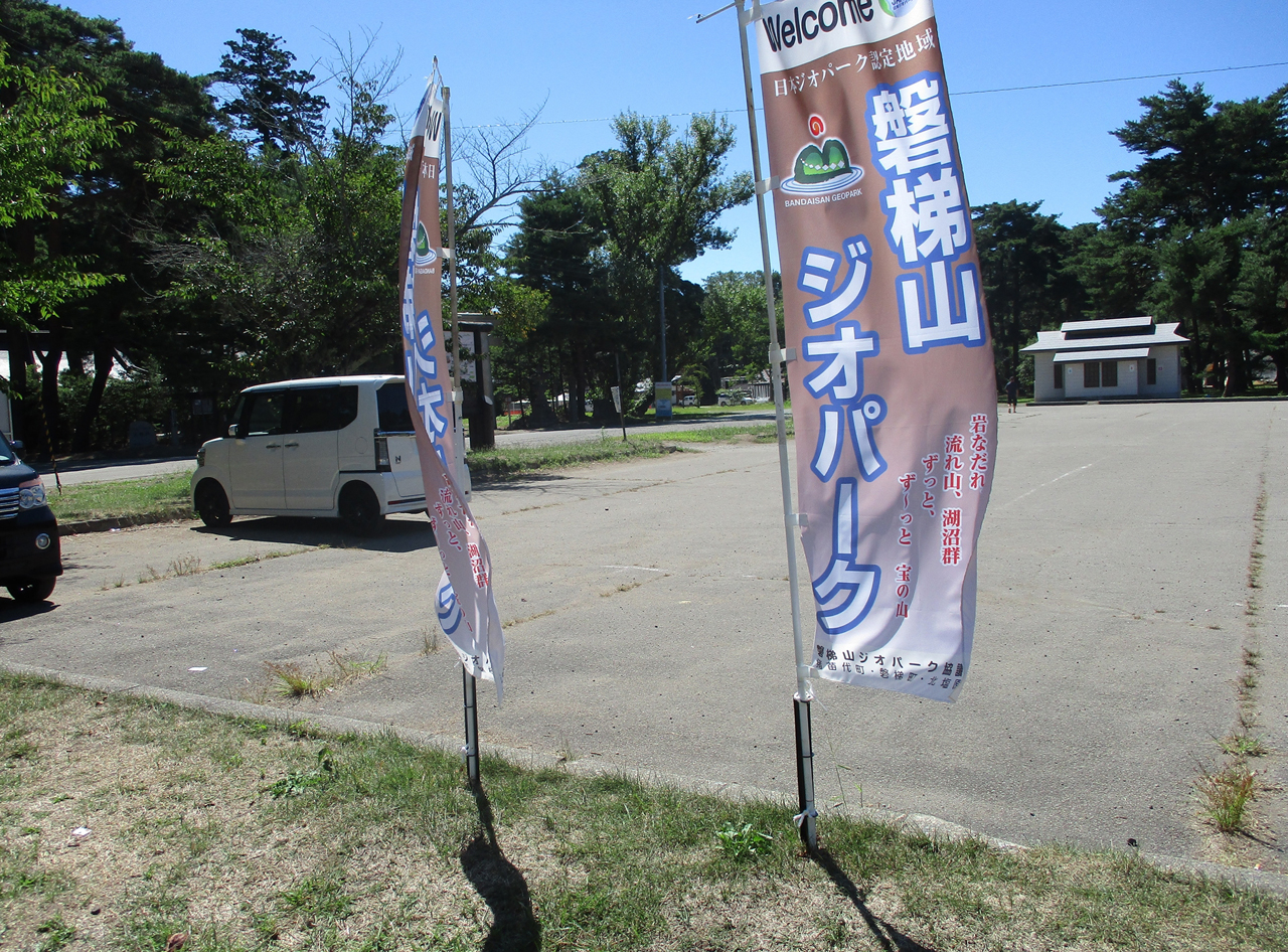 夏の間も磐梯山ジオパークを案内してくれている、のぼり旗の様子を確認に行きました。