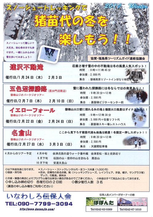 先にご案内していた、いなわしろ伝保人会の企画「スノーシュートレッキングで猪苗代の冬を楽しもう!!」の時期になってきました。