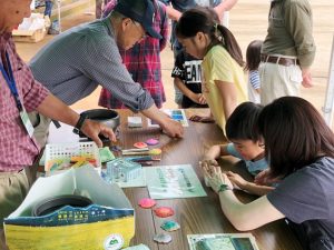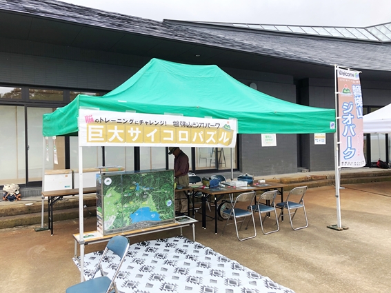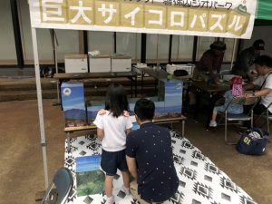 今回の企画には、おなじみの磐梯山ジオラマつくりと磐梯山ジオパークオリジナル巨大サイコロパズルを実施しました。